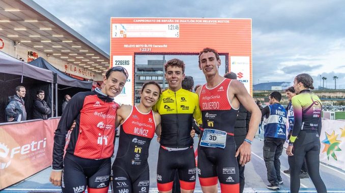 El sábado por la tarde, el equipo integrado por María Barceló, Nicolás Heredero, Marina Muñoz y Alfonso Izquierdo se ha subido al segundo cajón del pódium tras realizar los cuatro duatlones supersprints con un tiempo total de 01:21:52 e, incluso, marcar el mejor crono de toda la carrera en la segunda y la tercera posta. Los sorianos solo se han visto superados por Club Deportivo Delikia, que se ha hecho con el oro por solo cinco segundos, cerrando las medallas CEA Bétera (01:22:58).